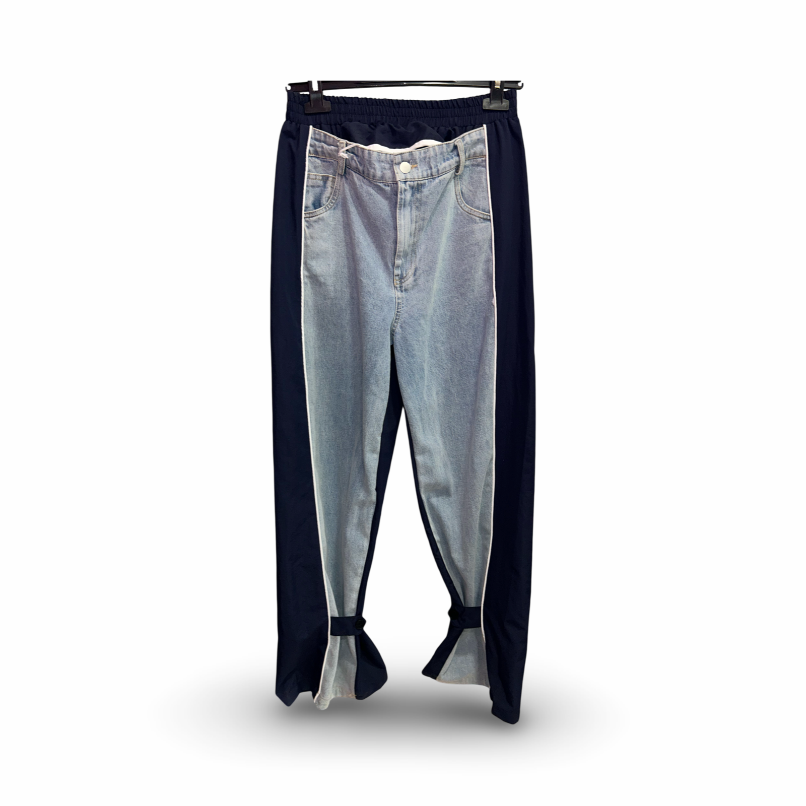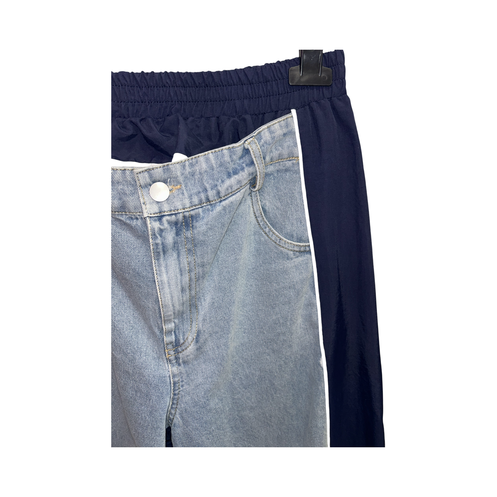 Un jean qui ne fait pas comme les autres ! Devant, un denim classique ultra stylé, et derrière, une matière K-Way légère et décalée pour un effet inattendu. Ce mix parfait entre streetwear et originalité te garanti un look unique qui sort du lot.